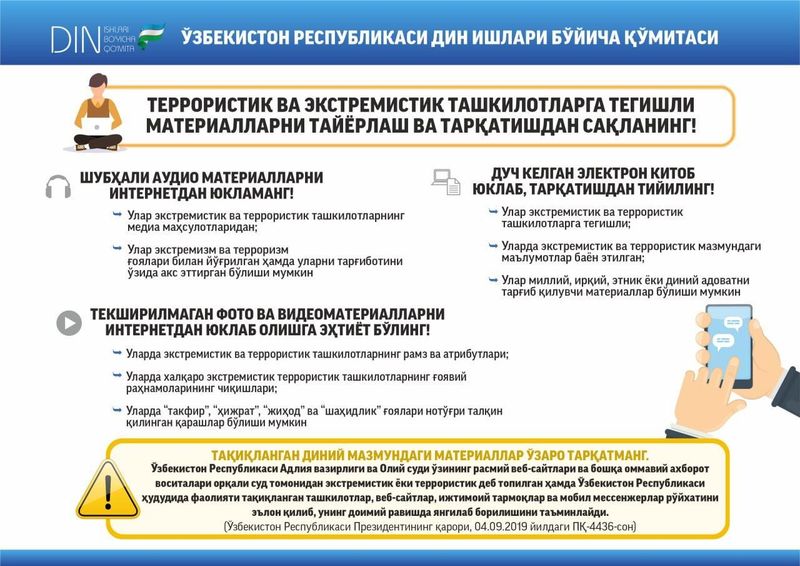 Тарқатиш ва намойиш этиш тақиқланган материаллар рўйхати Диний қўмита томонидан эълон қилинди